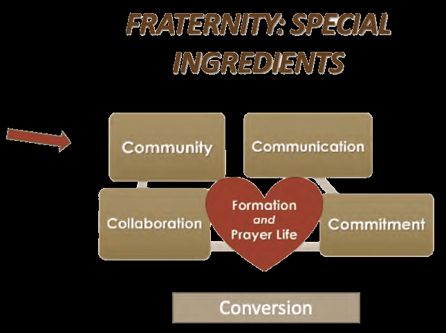 - create a School of sanctity — “Fraternity can promote in its members full development of the interior life: an intense liturgical life, sacramental and charitable life through practices such as fraternity prayer, Mass, Liturgy of the Hours, retreats and days of recollection.”
