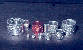 Bottom l-r: various bird bands | Florida Scrub Jay with colored bands